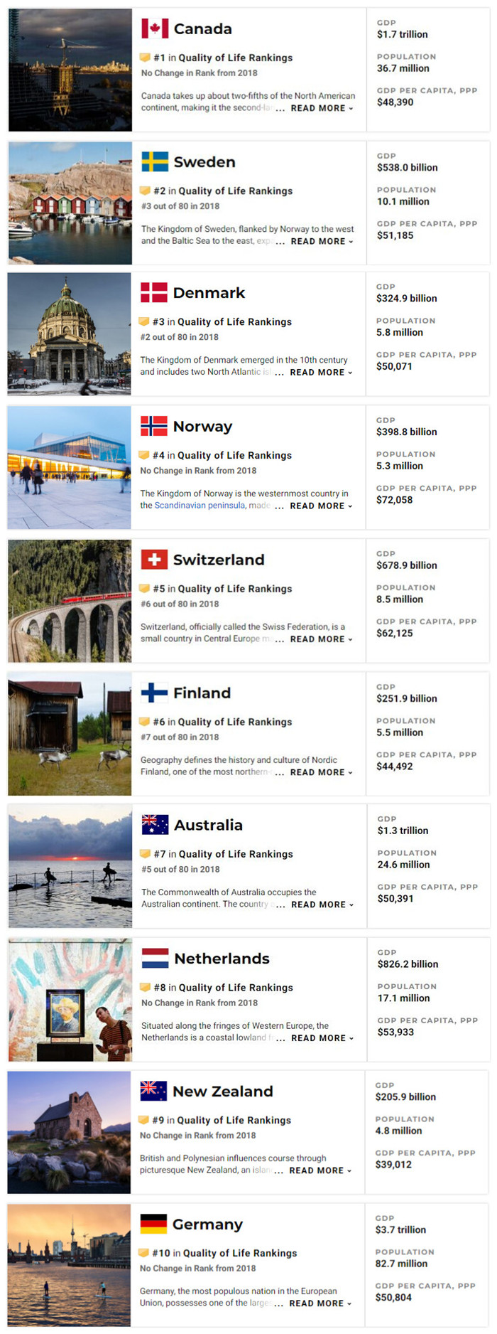 對于移民申請者來說,移民目的國的生活質量是他們最關心的方面之一?!?019全球國家生活質量排名》就成為今年U.S.News排行中受關注最多的子榜單之一。