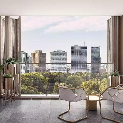 公寓大樓為92米高,采用26層布局,其中23層專(zhuān)門(mén)作住宅。King & Phillip為住戶(hù)提供由青銅色玻璃裝飾的天臺(tái)花園。